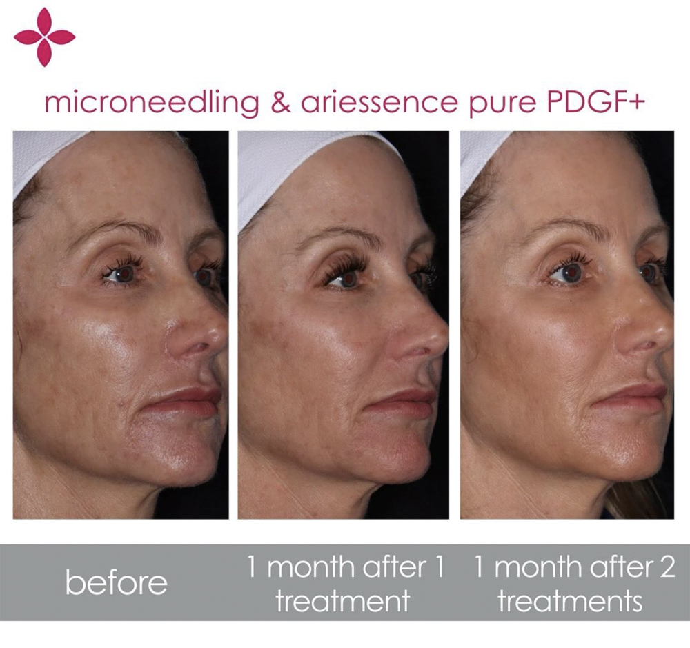 PDGF stands for Platelet-Derived Growth Factor — a naturally occurring protein in your body that plays a critical role in healing and skin regeneration. The version we use, Ariessence Pure PDGF+, is a pharmaceutical-grade formulation that’s: