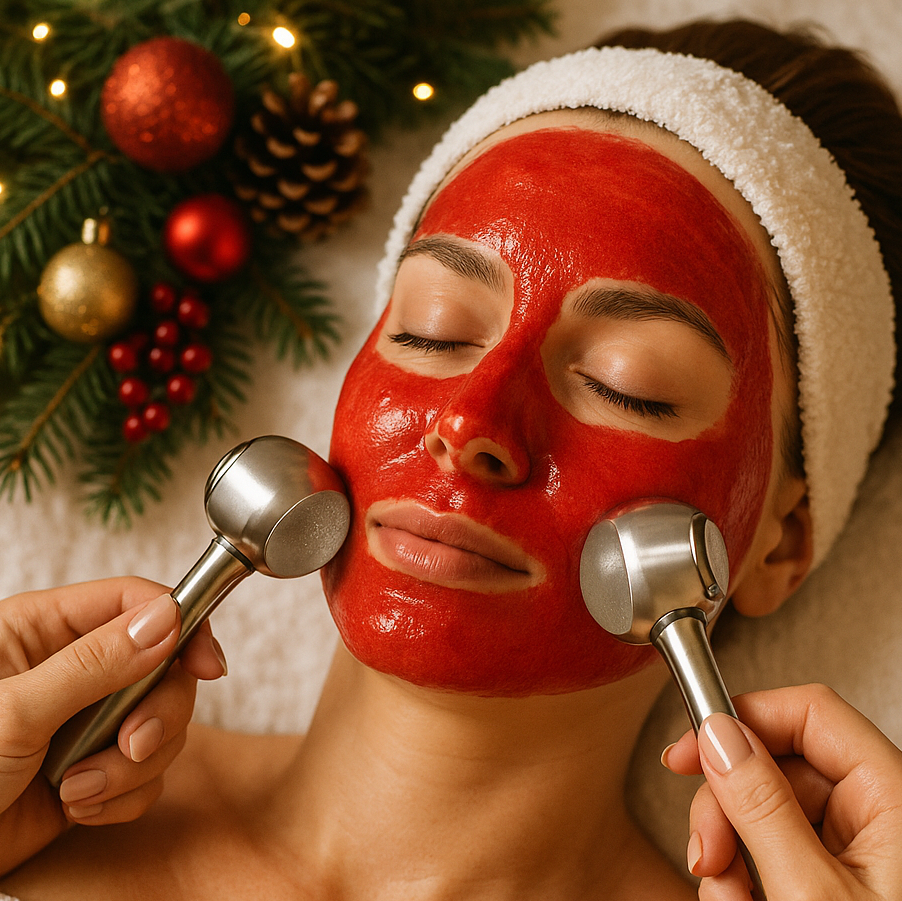 A festive Luxe Facial featuring cranberry enzymes, a cooling mask, and a relaxing ice globe massage. This limited-time treatment will bring out your brightest holiday glow!